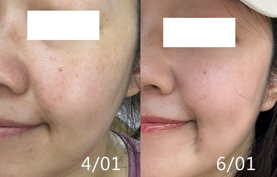 照片左邊是四月初還沒開始擦外泌體和女神霜前的照片