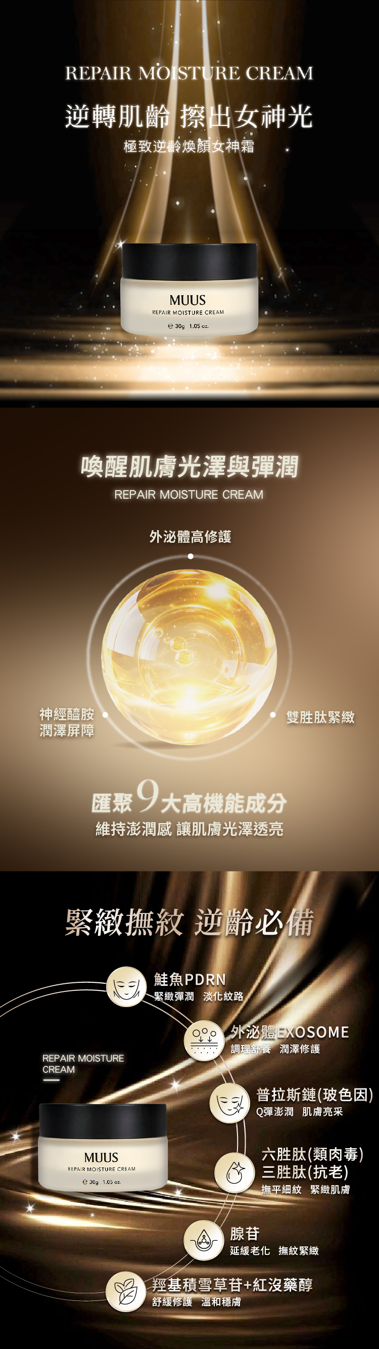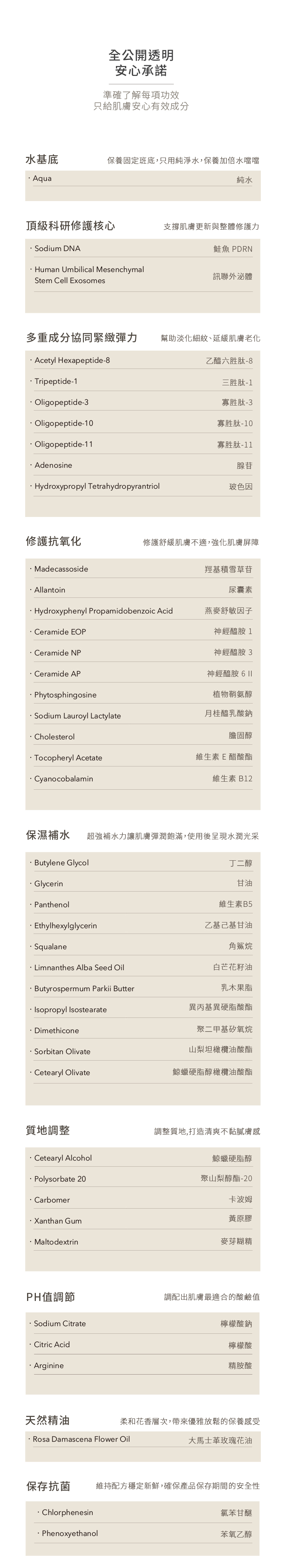 鮭魚PDRN與外泌體高修護 × 玻色因+雙胜肽+腺苷緊緻 × 神經醯胺潤澤屏障