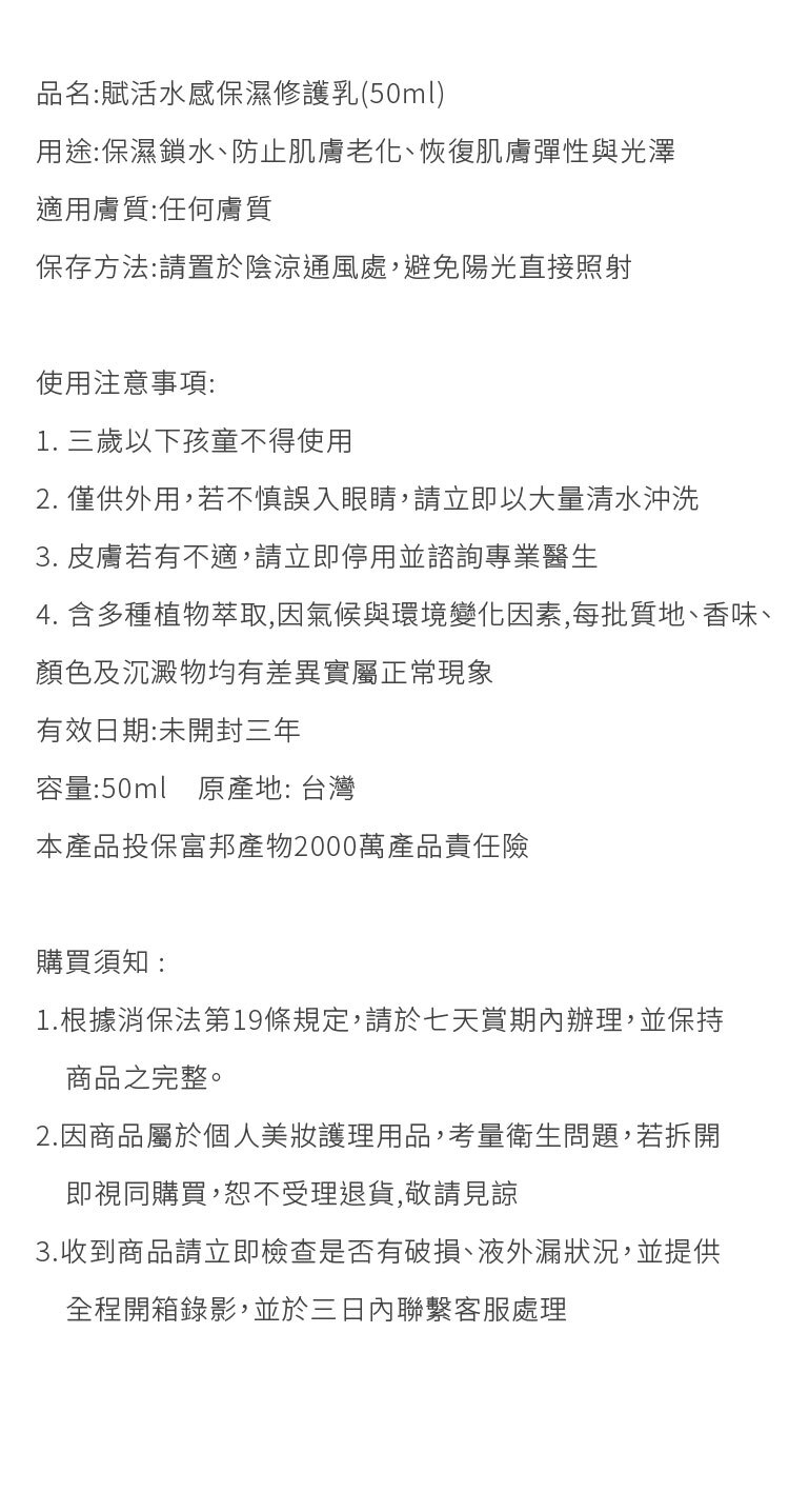 .小分子角鯊烷、白芒花籽油、荷荷芭油、楔基海帶萃取,對內鎖住水份,舒緩乾燥緊繃