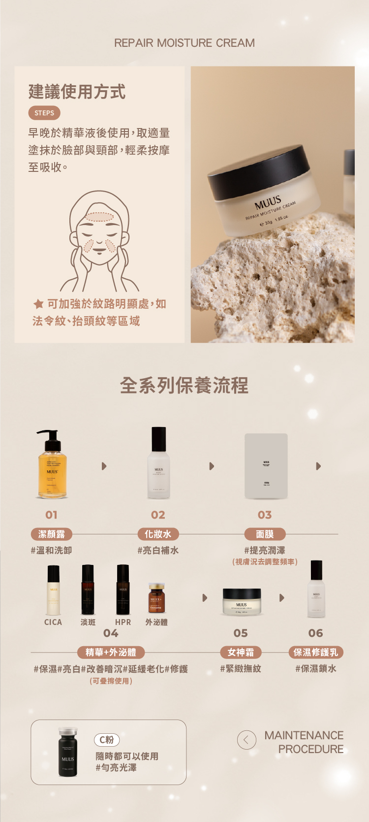 鮭魚PDRN與外泌體高修護 × 玻色因+雙胜肽+腺苷緊緻 × 神經醯胺潤澤屏障